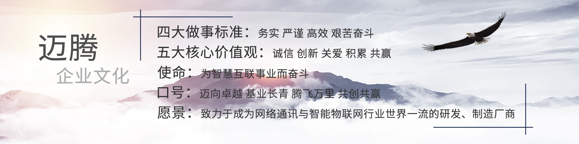 深圳市邁騰電子有限公司(簡(jiǎn)稱邁騰),成立于2008年2月,是一家專注于網(wǎng)絡(luò)通訊與物聯(lián)網(wǎng)產(chǎn)品開(kāi)發(fā)、生產(chǎn)、銷售及服務(wù)為一體的國(guó)家級(jí)高科技企業(yè)。目前是國(guó)、內(nèi)外網(wǎng)絡(luò)通訊與物聯(lián)網(wǎng)行業(yè)前列的研發(fā)、制造廠商。